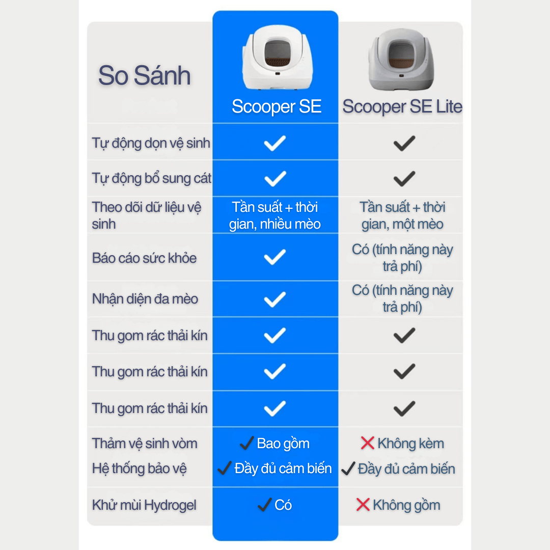 Scooper SE Lite là khoản đầu tư xứng đáng cho mọi gia đình yêu mèo, mang lại sự sạch sẽ, tiện lợi, an toàn và hỗ trợ chăm sóc sức khỏe tối ưu.