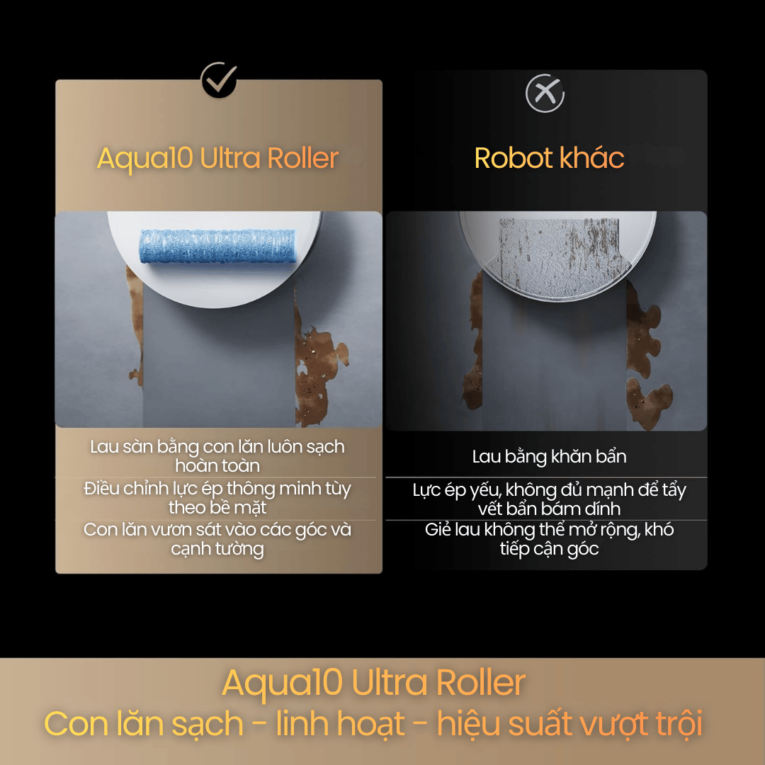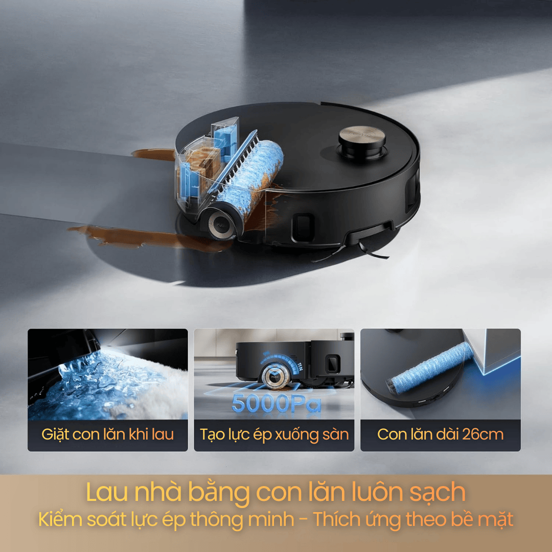 - AquaRoll™ - Công nghệ con lăn lau sàn tự làm sạch liên tục