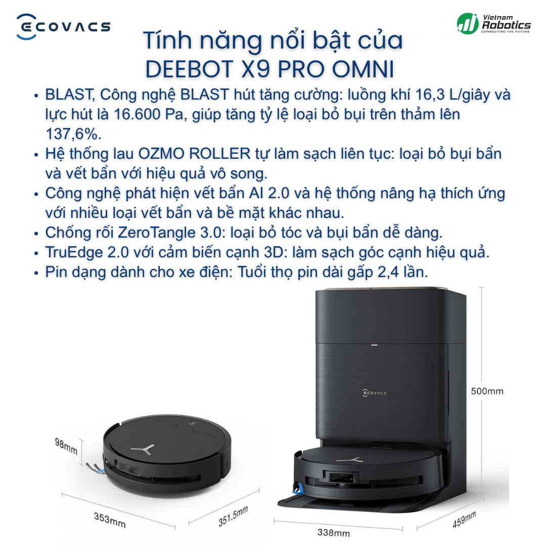 Robot hút bụi lau nhà thông minh Ecovacs Deebot X9 Pro Omni - Siêu phẩm làm sạch toàn diện cho ngôi nhà Việt