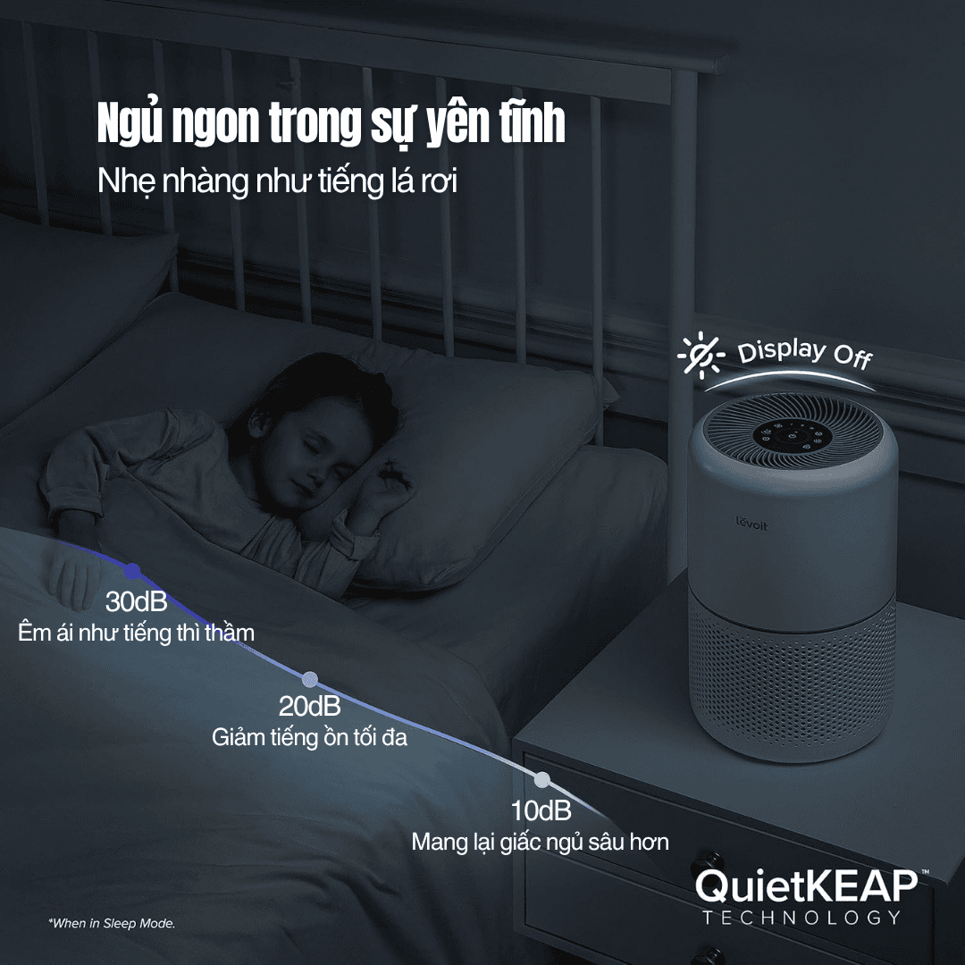 Không còn tiếng ồn khó chịu khi sử dụng vào ban đêm. Nhờ công nghệ QuietKEAP™, Levoit Core® 300S vận hành cực kỳ êm ái, giảm rung và tiếng động xuống mức tối thiểu - lý tưởng cho phòng ngủ hoặc không gian học tập cần yên tĩnh.