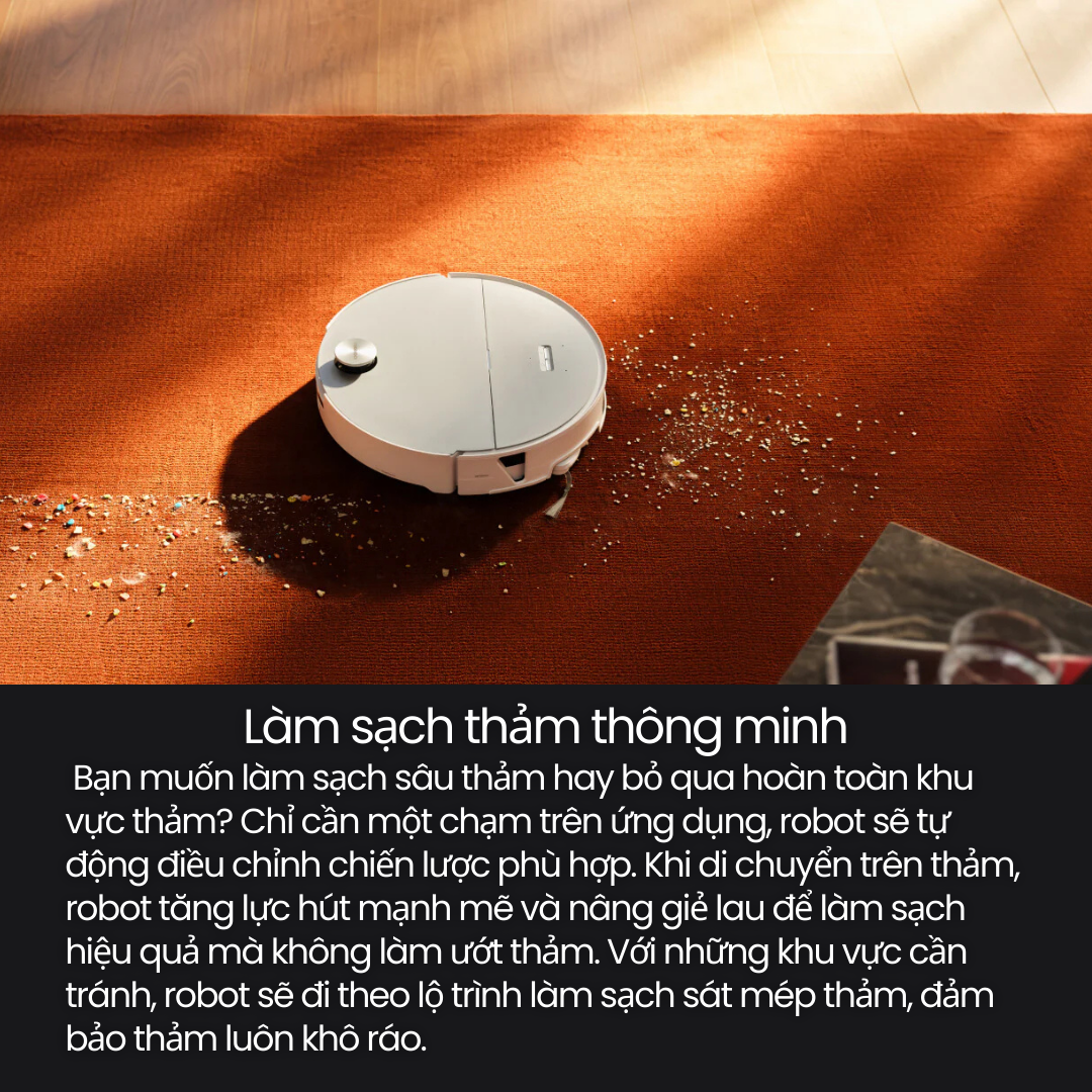Trong kỷ nguyên nhà thông minh, người dùng Việt ngày càng đòi hỏi cao hơn ở một robot hút bụi lau nhà: sạch sâu hơn, thông minh hơn, ít can thiệp thủ công hơn và thân thiện với thú cưng, sàn gỗ, thảm cao cấp.