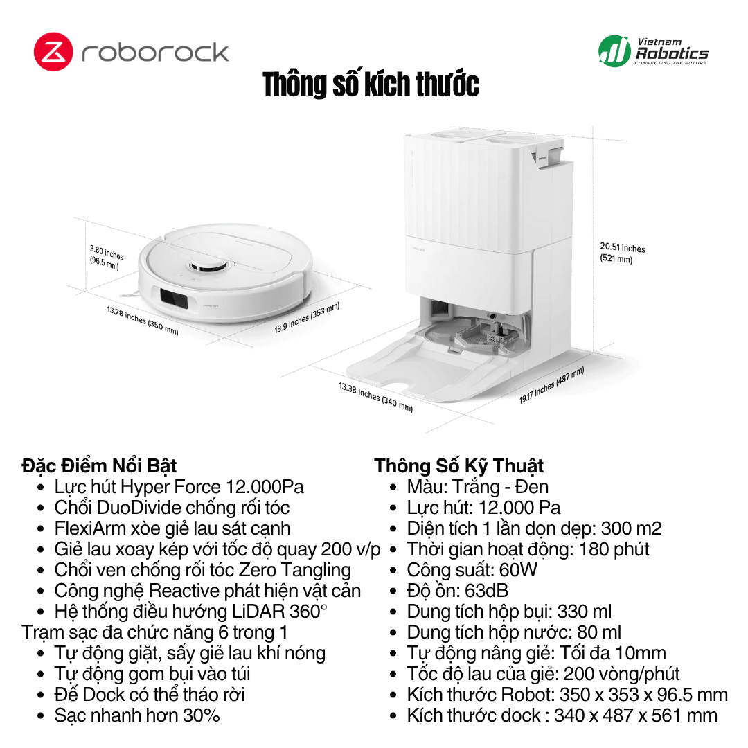| Dock sạc | Tự giặt - sấy - đổ rác - cấp nước - sạc nhanh |