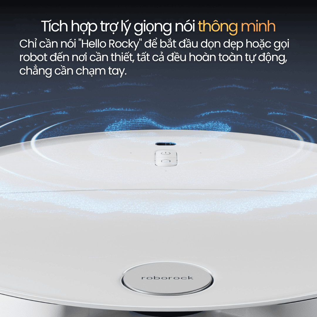 Không cần chạm tay - chỉ cần nói “Hello Rocky” để ra lệnh dọn dẹp, chọn phòng, hoặc điều hướng robot đến khu vực cần làm sạch.