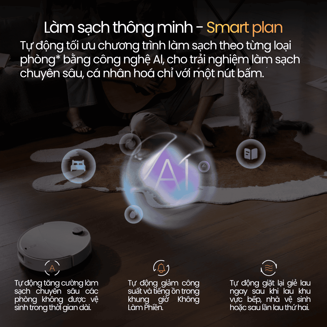 Kết hợp với bản đồ thông minh đa tầng và công nghệ SmartPlan AI, Qrevo EdgeT có thể phân loại phòng và đề xuất chương trình làm sạch tối ưu cho từng khu vực trong nhà.
