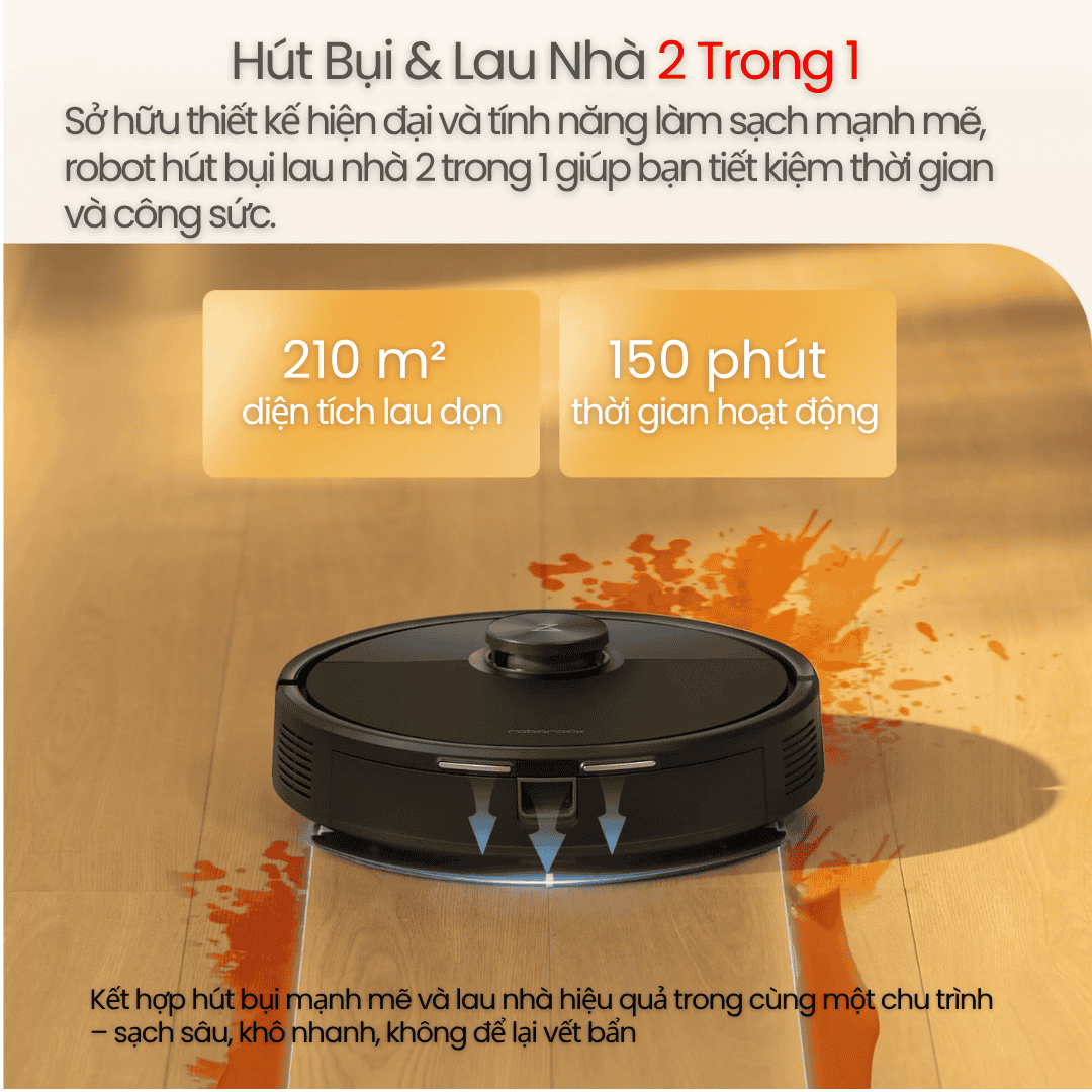 Khả năng làm sạch mạnh mẽ này giúp robot hoạt động ổn định trong thời gian dài, duy trì hiệu quả vệ sinh toàn diện cho ngôi nhà của bạn.