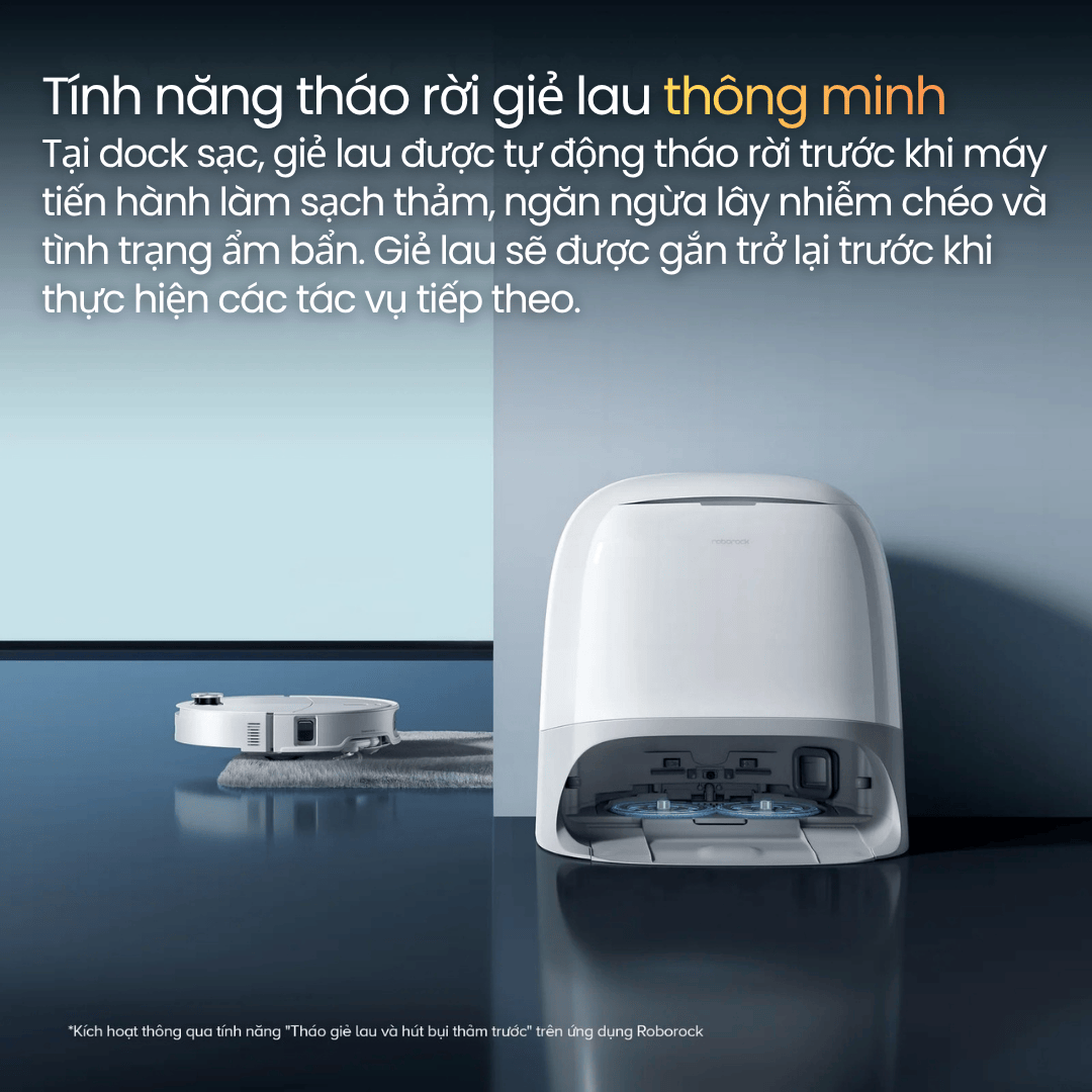 Nhờ đó, robot luôn duy trì tình trạng vệ sinh tốt nhất cho cả sàn nhà và giẻ lau, thân thiện với mẹ và bé, an toàn cho thú cưng và loại bỏ 99,9% tác nhân gây dị ứng.