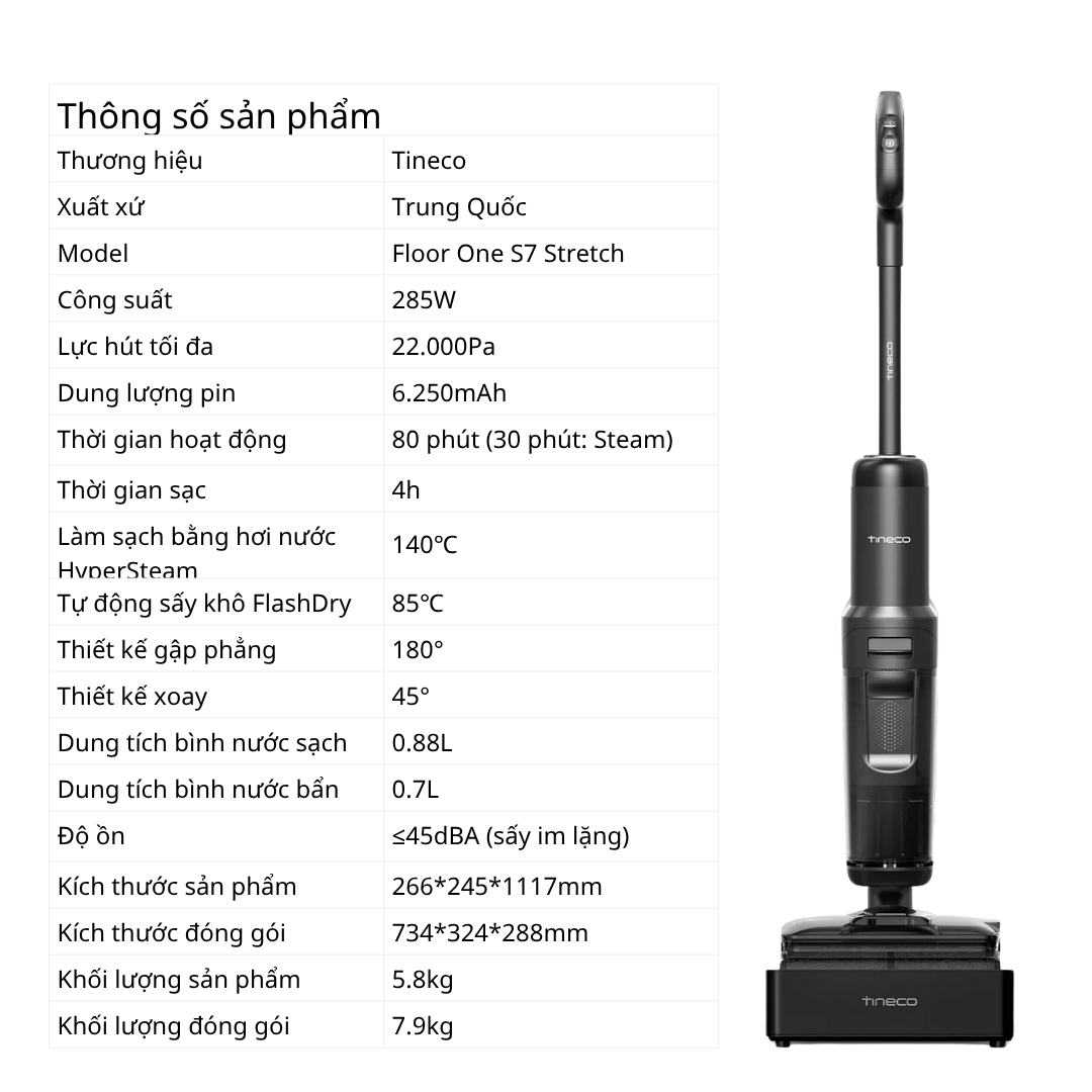 Nếu bạn đang tìm kiếm một giải pháp làm sạch toàn diện, mạnh mẽ và tiện lợi, thì Tineco Floor One S7 Stretch Steam chính là lựa chọn hoàn hảo. Với công nghệ hơi nước HyperSteam 140°C, máy không chỉ hút sạch bụi mà còn loại bỏ vết bẩn cứng đầu, diệt khuẩn an toàn, mang lại không gian sống sạch sẽ và trong lành.