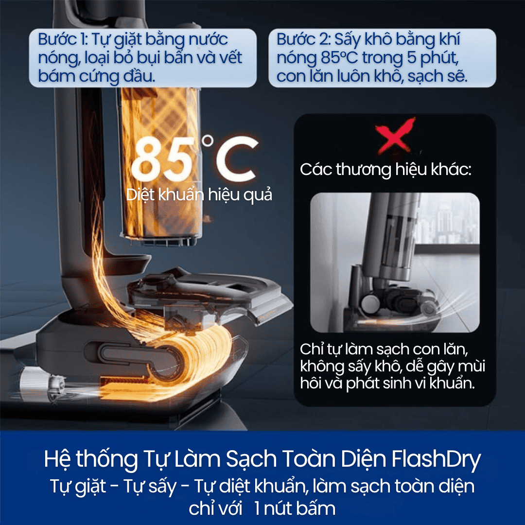 Công nghệ FlashDry 85°C - giặt và sấy khô con lăn chỉ trong 5 phút