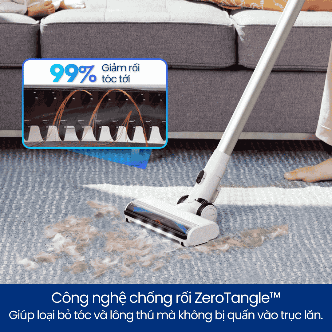 Thiết kế gập phẳng 180°, siêu linh hoạt chỉ 13 cm khi nằm ngang, cho phép người dùng dễ dàng vệ sinh dưới gầm giường, tủ và các khu vực khó tiếp cận. Công nghệ ZeroTangle™ chống rối tóc giúp con lăn luôn hoạt động trơn tru, không bị kẹt hay quấn tóc.